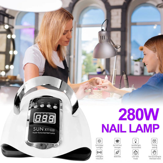 “GlowPro 280W UV LED Nail Lamp – Automatic Sensor Gel Nail Curing Light with 4 Timer Settings, 66 LEDs, White”